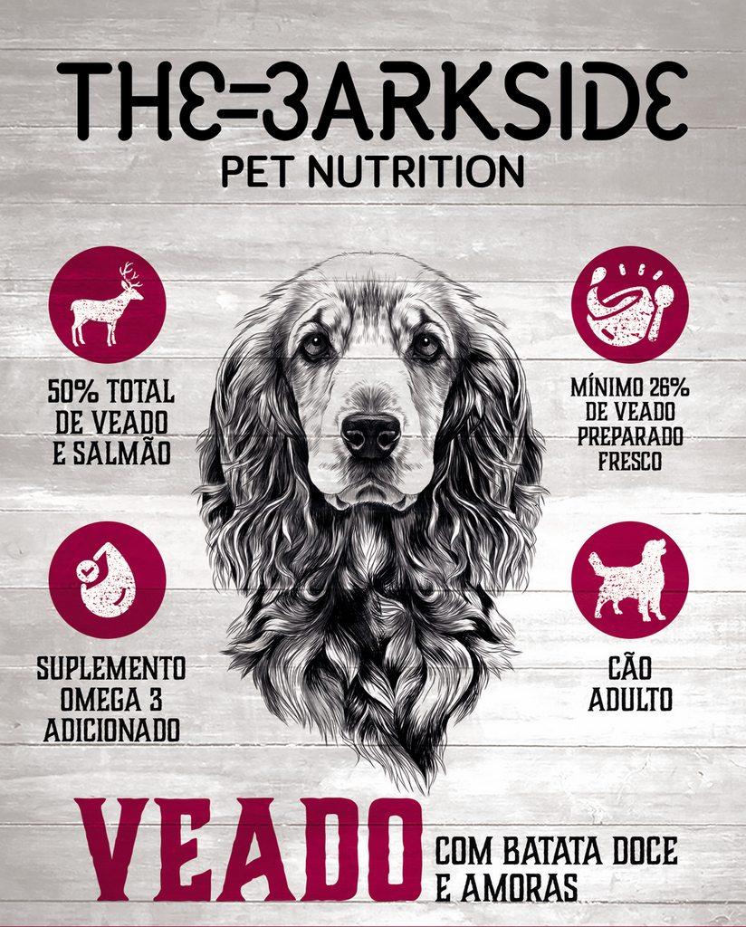 - 50% dos ingredientes provenientes de Veado e Salmão